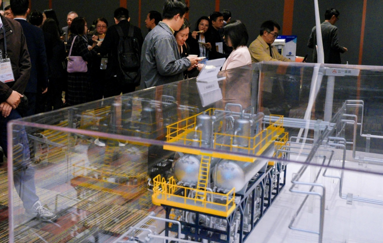 ▲现场设有以新能源及可持续发展为主题的产品及技术展示区,展出新能源汽⾞、充电桩、绿⾊出⾏及低碳排放等产品、技术及解决⽅案